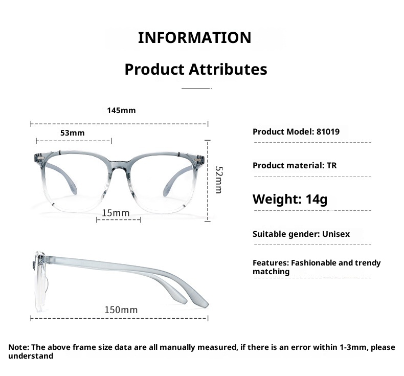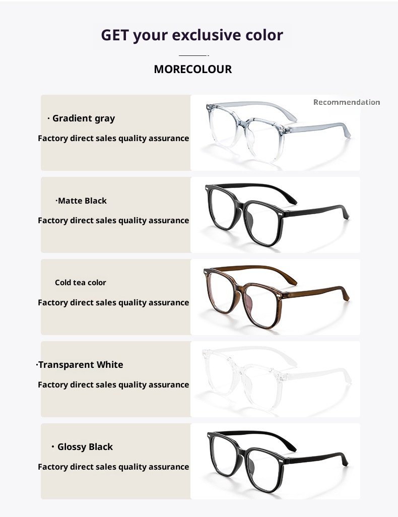 Frame colors: gradient gray, cool tea, bright black, matte black, translucent gray, transparent white